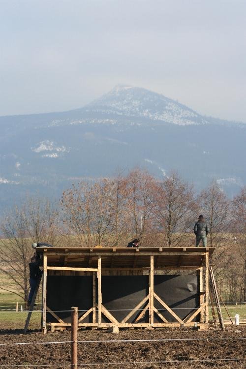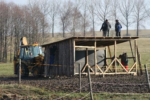 Nesmírná solidarita lidí v Křižanech pokračuje každým okamžikem. Od časného rána se dnes v objektu domova scházeli dobrovolníci z řad přátel, místních obyvatel, hasičů a dalších známých, kteří v průběhu dne vybudovali z darovaného materiálu přístřešek pro 5 potřebných koní (nemocní, po zlomeninách obou nohou, klisna 14 dní před ohřebením…). Zbylé stádo, uvyklé pobytu venku, má přístup na pastviny a k potoku. Koním v přístřešku se voda nosí ručně. Celý den také členové o.s. s pomocníky spravovali ohrady, mnohdy za pomoci provizorně zapůjčeného nářadí.