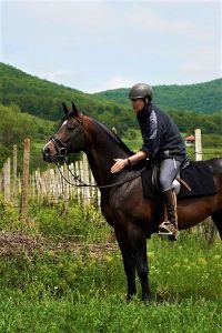 „Ano, můj partner Richard je koňák na slovo vzatý a v Irsku je učí skákat ve volnosti přes kamenné zídky a kanalizace. Pak je snadnější je to učit s člověkem v sedle. Osvojí si to přirozeným vývojem, takže takto pravidelně skáčeme se všemi našimi koňmi, od čtyřhvězdičkových militaristů po naše čtyřleté koně. Je mnohem snadnější je trénovat bez ničeho, co by jim na zádech překáželo, nemusí řešit balanc jezdce, jen sebe a mohou u toho lépe přemýšlet. Jsou si pak jistější i později s jezdcem. Ano, lidé o našich koních hodně mluví, např. že nebudou úplně nejlepší v drezúrním testu, ale v krosu udělají vše správně, protože důraz klademe právě sem.“
