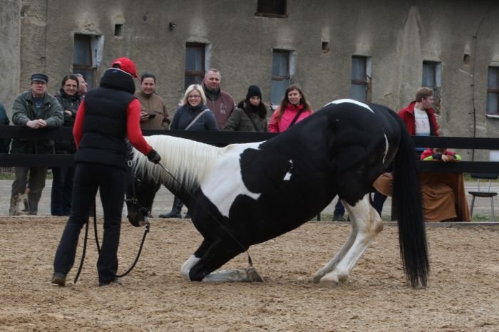 Jestliže totiž učíme koně lehat či se vzpínat, neučíme ho jen konkrétní cirkusový kousek, ale učíme ho i velmi nebezpečný způsob chování, které může kůň, který neprošel skutečně perfektním výcvikem, velmi snadno zneužít a následně ohrozit každého, kdo s ním bude manipulovat. Tedy nejen majitele, ale i ošetřovatele, kováře, veterináře či „zcela neškodnou“ návštěvu ve výběhu.