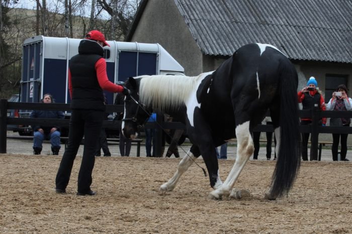 Některé koně může naše přítomnost odradit či uvést do nejistoty, pak je nutné vydržet a pokus opakovat. Pokud se ale dlouhodobě nedaří, musíme se smířit se skutečností, že „tak lacino“ tento cvik od tohoto konkrétního koně zkrátka nedostaneme. Někdy by ani maximální míra trpělivosti ovoce přinést nemusela.