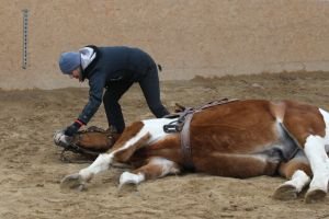 Doufám, že mi těchto několik úvodních vykřičníků odpustíte. Považuji ale opravdu za nezbytné zdůraznit, že s výcvikem cviků, jako je lehání či vzpínání, v žádném případě není vhodné začínat, pokud cvičitel nemá dostatečný objem zkušeností, jasný výcvikový plán a cíl a jeho kůň nemá kompletně ukončený základní výcvik.