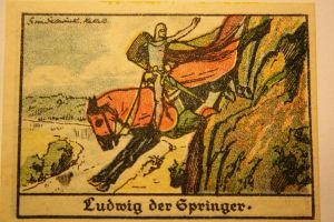 Kdysi jsem na poštovní známce uviděla obrázek jezdce, který skáče s koněm ze skály do řeky. Pod obrázkem byl nápis Ludwig der Springer (Ludvík Skokan) a silně připomínal našeho Horymíra a Šemíka.