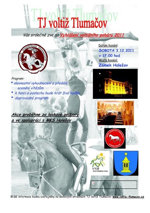 Na další galavečer do Holešova můžete přijet hned 3. 12. 2011, kdy proběhne voltižní galavečer. Jste srdečně zváni.