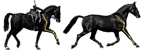 Když se kůň aktivně sune dopředu zadními končetinami, místo aby se táhl dopředu předními končetinami, dělá to s velmi mírně ohnutým hleznem a zádí aktivní (naklopenou) ve chvíli, kdy je zadní končetina na zemi.