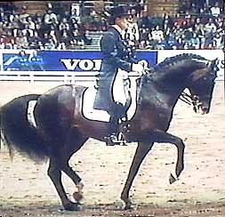 My ale víme, jaká je odpověď – kůň má velké chody a je velmi dopředný, takže ho můžete držet a bičem ho nějak donutit, aby dupal nohama na místě, můžete mu zadržet klus a donutit ho, aby „věšel nohy". Voila, piafa a pasáž!