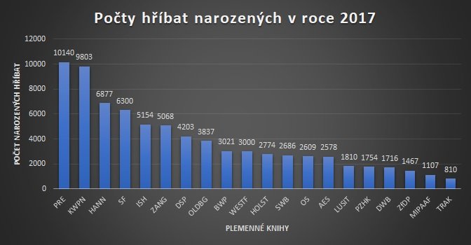 V roce 2017 se narodilo 88 210 hříbat, tedy o více než 3 000 hříbat více, než tomu bylo v roce 2016. Opět byl největší počet narozených hříbat registrován pod plemennou knihou PRE – celkem 10 140 hříbat. Vlastně prvních pět míst zůstalo v naprosto stejném pořadí – na špici již zmiňovaná PRE, na druhém místě KWPN s 9 803 hříbaty, dále pak hannoverská PK s 6 877 hříbaty, Selle Français se 6 300 hříbaty a irský sportovní kůň s 5 154 hříbaty. O 1 466 hříbat více bylo registrováno pod PK Zangersheide, která se tím vyšvihla z osmého na šesté místo.