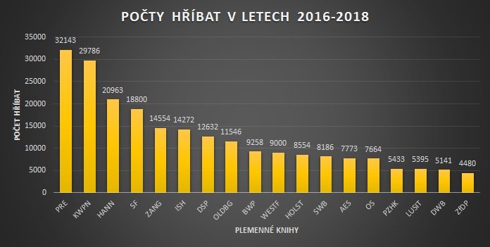 Během tří let tak bylo v plemenných knihách, které jsou členy WBFSH, registrováno celkem 264 953 hříbat. Což je rozhodně velké množství. Za zváženou stojí, zda je vůbec v silách lidí se o tyto koně vhodně postarat, ale to by byla jiná úvaha. V grafu uvedeném níže je vidět, které plemenné knihy byly v letech 2016–2018 největšími producenty hříbat.