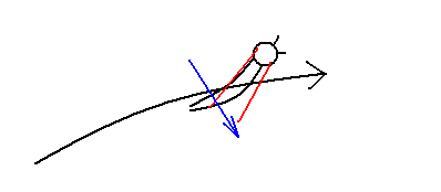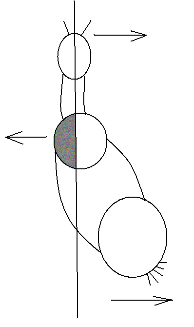 Kůň přirozeně křivý doprava napíná levou otěž a pravá je prověšená. Má křivý krk a tedy přetíženou levou lopatku, ta mu utíká doleva.