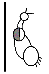 2. udržovat malý odstup od stěny (sedí výrazněna pravé sedací kosti).