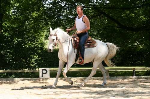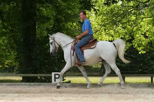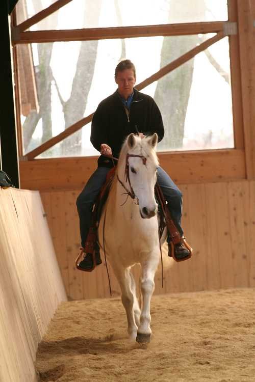Jezdí westernově a má za sebou celou řadu různých kurzů a seminářů westernového ježdění, NH apod. Jeho kůň nemá žádné zvláštní problémy, ale pohybuje se neohebně, s nevýraznými chody, je takový nemastný neslaný, sice poslušný, ale bez energie, natažený, rozpadlý, bez přilnutí.