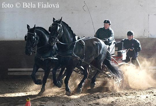 A jak dopadla soutěž čtyřspřeží? Zde došlo na „souboj“ otce se synem, tedy Jiřím Nesvačilem starším a mladším. Pomyslné vavříny však nezískalo dravé mládí, nýbrž zkušenosti, neboť zcela zaslouženě si odměnu za první místo odvezl Jiří Nesvačil starší z JK Hřebčín FAVORY.