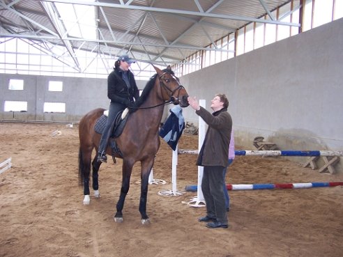 Některé dvojice se bohužel nepodařilo zachytit, nicméně ať už ve skocích či drezuře, Denis neustále zdůrazňuje potřebu mít jemnou ruku, jasné požadavky a práci přizpůsobit individuálně: nechce dopředu? zacválej a zkus to znova; chce moc dopředu? zmenši kruh – bez přílišného brždění rukou kůň přirozeně zpomalí.