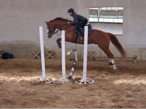 U Kristýny byla především důležitá změna sedu. Neprolamovat se v boku, srovnat se a vytáhnout se nohama dolů a z pupíku nahoru. V období růstu jezdce je důležité neustále provádět sebekontrolu sedu – mozek potřebuje čas na to vyrovnat se s prudkým růstem – byl zvyklý na ruku dlouhou takhle a najednou změna. Bez otěží na sed zkus přechody krok-klus, krok-cval, práce bez třmenů na lonži. Je třeba nevtáčet zápěstí, tvrdne tak ruka, je lepší přizpůsobit délku otěží a zachovat tak měkké spojení s hubou.