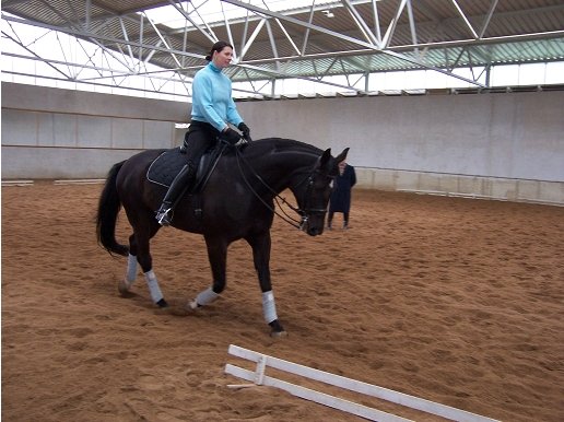 U tohoto hřebce je třeba dávat pozor, aby se nerozpadl a nenechával záď za sebou. Hodně práce do stran, cik-cak překroky v klusu i cvalu ho pomohou vzadu angažovat, nebude potom sebou tolik házet v řadě. Při nácviku piruet začni v kroku na trojúhelníku a pak přidávej cval. Koně posílíš a neztratí rovnováhu, stabilizuj přilnutí v piruetě. V práci do strany nespěchej, lépe koně posílíš, když ho necháš se odrážet namísto toho, aby využíval setrvačnosti.