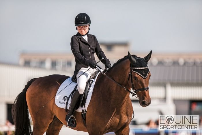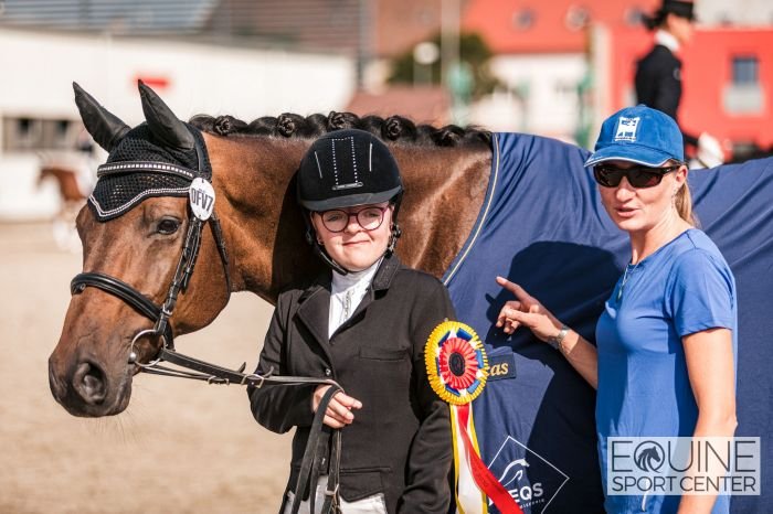 Začátek roku 2020 byl takový, jaký byl … Kvůli vládním nařízením ohledně koronaviru byly zrušeny závody i tréninky a nikdo nevěděl, co bude dál. Po této neplánované pauze jsme vyrazili na první možné paradrezurní závody. Terezka s Erinem byli velkým překvapením a sklidili nemalé ohlasy. Terezku málem nikdo nepoznal, kromě toho, že vyrostla, měla úplně jiný sed, jiné pomůcky, jiné předvedení úloh. Začala se nekompromisně měřit s dospělými paradrezurními „mazáky“ a skočila mezi nejlepší čtyřku těchto jezdců!