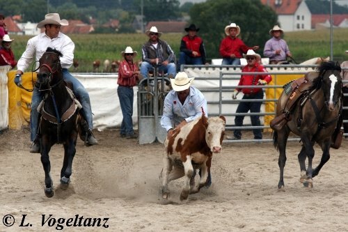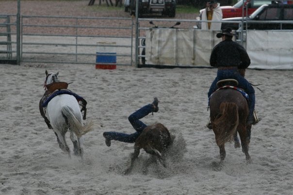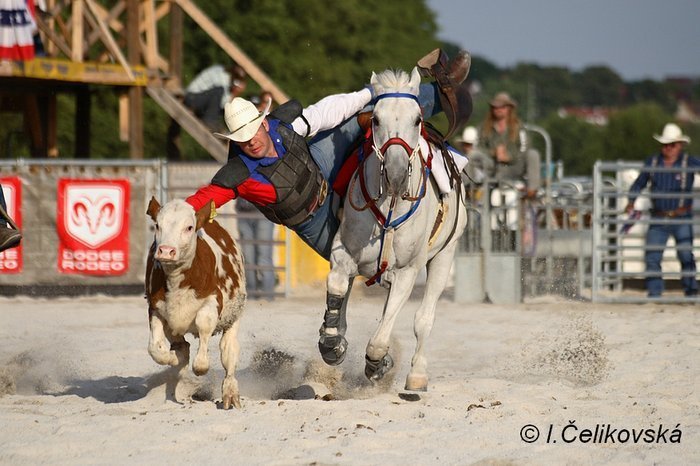 Abychom se ale dostali k jádru věci. Jezdec startuje ze startovacího boxu, přičemž na jeho pokyn je do arény z vypouštěcího zařízení vpuštěno tele. V ten moment může jezdec odstartovat. Z druhého vypouštěcího boxu současně s ním vyjíždí druhý jezdec. Ten nesoutěží, nýbrž pomáhá. A nemělo by to být jen tak „na oko“, jeho role je velice důležitá. Nejen, že nese obrovskou míru zodpovědnosti, ale přidává i nemalý podíl na tom, jak soutěžní jezdec disciplínu zvládne. Měl by mu pomoci udržet tele v pohybu a tzv. „na lajně“, kde by měl soutěžící jezdec v ideálním případě seskočit z koně, souběžně s tím chytit tele a daným způsobem ho povalit na zem. Zřejmě už chápete, proč je tato disciplína v určitých skupinách lidí tak nepopulární, ba dokonce je někým považována za týrání zvířat. Důležité ale je si uvědomit, z čeho tato disciplína, potažmo pak celé rodeo vychází – z rančovní práce. Pokud je tele například zraněné, nemocné nebo je potřeba ho z jakéhokoliv jiného důvodu odchytit z pastviny, není příliš mnoho možností, jak si pomoci…