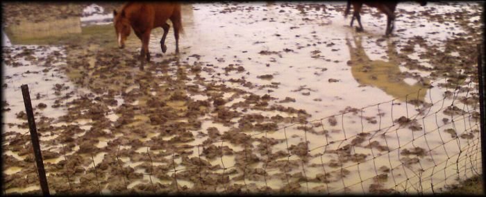 Majitelé a ustajovatelé sice při sběru bobků v šortkách a kroksách, bez bahna a utopených holínek, jásali a velice rychle zapomínali, jak krušno bylo… jenže s příchodem podzimu se chtěj nechtěj zase hezky rychle rozvzpomněli. Bláto bylo zpět, a horší než minule, protože opakovaně močí a trusem plus slámou a senem sycená a udusávaná a zase rozbahňovaná půda ztrácí samovyrovnávací mechanismy, takže rychleji čvachtá a déle zůstává na povrchu mazlavá. A v takovém blátě se přece nedají výběhy plné koní upravovat! Holt přežijeme další mokrou zimu a budeme s nadáváním vyhlížet jaro…