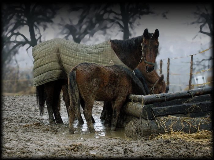 Většinou se totiž o hezká ustájení s pastvinami strhla kolem větších měst taková bitka, že i původně dostatečný prostor postupně padl za oběť náporu vyšších a vyšších počtů ustájených koní. Beznadějně překoňované bylo, ať jsem konkrétní, celé velké okolí Brna… sehnat kvalitní venkovní ustájení? Takřka nemožné! Málokdo totiž odolal a nepřijal nějakého toho koně navíc, nad „akorát“ stav, a tak ani ti, co začínali s dostatečným prostorem, nakonec nedisponovali plochami natolik rozlehlými, aby je mohli bez úprav ponechat koním celoročně a nestalo se z nich jedno veliké blátiště. V nejsychravějších, nejmlhavějších dnech naprosto bez sluníčka byl na zvířata schlíple stojící s ocasy proti větru na komplet rozblácených holých výbězích žalostný pohled… sucho neexistovalo, jakmile se majitel vzdal boxu, odsoudil koně k zimnímu životu v hmotě umíchané z dešťů, moči, výkalů a zbytků sena či podestýlky… úniku nebylo.