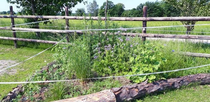 Jedním z řešení jsou haldy větví, které jsou natolik těžké, že s nimi koně nehnou. Zároveň jich není taková masa, aby úspěšně stínila porostu, snažícímu se přežít pod ní. Ať už cíleně nasadíte bylinky, nebo ponecháte na přírodě, co vám na vašem stanovišti nadělí, určitě se zeleně dočkáte! Někomu z nepropustné kupy větví rostou stromy, jiným kopřivové pásy pro bělásky, někdo se raduje alespoň z trošky bylinek ukrytých před koňmi. Tato stanoviště jsou navíc skvělým ostrůvkem pro drobný život, který by jinak ve vašich holých výbězích spolu s koňmi místo nenašel. Občas se v takových haldách u hranic pozemku usadí ježčí rodinka, občas si tam začnou stavět hnízda ptáci. O množství brouků, pavouků a jiných breberek, tak důležitých pro fungující koloběh přírody, ani nemluvím!