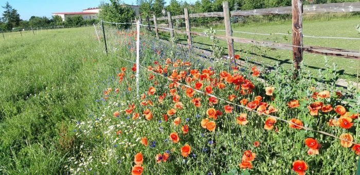 Pásy lučních květů po obvodu pastvin jsou obrovsky moderní a neskutečně nedoceněnou záležitostí pro biodiverzitu areálu. Chcete-li mít na vašem stanovišti nejen koně, ale fungující krajinný celek, popřemýšlejte nad nimi!