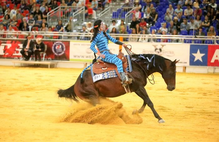 Americana si mě získala, a proto jsem si přála, abych mohla jet znovu. V roce 2013 jsem však měsíc před startem přišla o část palce na ruce, takže jsem i přes zaplacené všechny poplatky startovat nemohla. Rok 2015… přesně si nevzpomínám, proč jsem nejela, ale zřejmě nebyla správná konstelace hvězd. Přišlo to až v roce 2017. V tu dobu jsme již se Šikulou byli známá dvojice, několikrát jsme vyhráli mistrovství republiky v reiningu, Šikula se stal koněm roku a na mezinárodní scéně NRHA jsme získali několik Bronze Trophies. Také jsem se stala trenérkou, a proto jsem musela přijít s něčím s velkým N. Zamilovala jsem si film Avatar a několik let ve mně zrál nápad, že pojedu freestyle jako Avatarka. Na Americanu jsem vyrazila společně s mojí dosud nejúspěšnější svěřenkyní a kamarádkou Terezou Rannou a jejími rodiči.