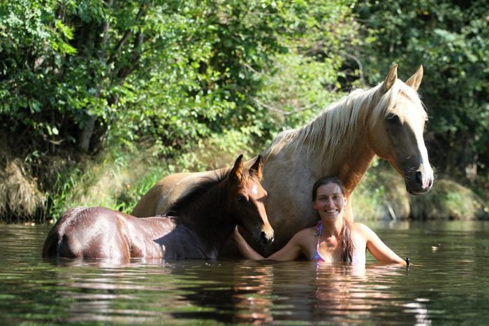 Kety byla asi největší oříšek, vybrala jsem si ji a dostala jako dárek od babičky. Byl to divoký 2,5letý mustang odchycený na šumavských pastvinách. Neměla jsem ještě tolik zkušeností, hodně jsem se z ní napadala, ale naučila mě přemýšlet, být trpělivá a teď je z ní kůň, se kterým můžu jet bez sedla ve volnosti ven a vím, že se na ni mohu spolehnout a ona na mě. Ve volnosti pro mě udělá cokoliv, přeskáče parkur, odejde trail, je to neobyčejný kůň. Současně je to ten typ koně, který v sobě má pořád kousek divokosti, pokud ji nasedlám a pustím do cvalu, bude s největší pravděpodobností vyhazovat, jako když má sedlo poprvé 🙂