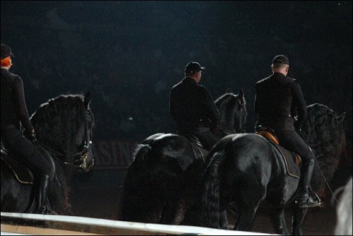 Niekoľko minút a drezúrny obdĺžnik sa premenil na krásnu manéž, v ktorej sa rozbehol program večernej show. Hlavným protagonistom bol tanečno hudobný súbor Reunion. Jeho vystúpenia tanečníkov a koní, podfarbené svetelnými efektami a emotívnou hudbou, rozhodne zaujali divákov.