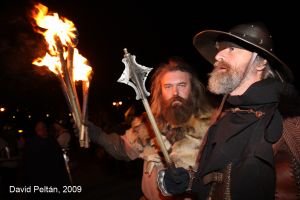 Avšak nejen tato show byla při Táborských setkáních spjatá s koňmi. Hned první den, v pátek večer, se konal pochodňový průvod městem. Stovky lidí tvořící pro koněpoměrně úzkou uličku, šermíři, cinkající zbroj, bubeníci (verbíři? – prostě randál od bubnu), staré dřevěné vozy a prostý lid se zapálenou pochodní. Tak vypadal první den, kdy průvod putoval od místní zemědělské školy před další stovky lidí na Žižkově náměstí. Zúčastnili se jej všichni přítomní koně, jeden dokonce vezl samotného Žižku, někteří byli zapřažení do starých dřevěných, v podstatě neotočných vozů. „Průvod probíhal v pohodě, jen nám to na té kamenné dlažbě před hlavním podiem na náměstí trochu podklouzlo. Naštěstí to Siham ustál. Průvod byl akorát dost pomalý," komentoval jezdec Martin Povr, který sedlal svého arabského valacha.