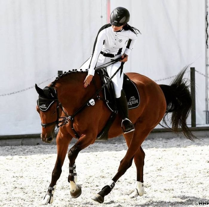 Nejelegantnější je ale asi kombinace černobílá, kterou hnědá barva koně vůbec neruší. Podmínkou je, aby dečka, nebo alespoň lem u světlého hnědáka byl tmavý a naopak u tmavého světlý, aby bylo požadavku kontrastu učiněno zadost. Tahle fotografie získala cenu redakce v naší soutěži. A prosíme jezdkyni o tip, kde koupila to krásné tričko! 🙂