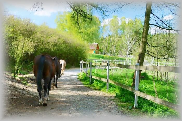 Jak jsem již zmiňovala – koně jsou tvorové neskutečně zvědaví, a proto je třeba jim život v našem lidském držení (jen na omezeném prostoru) obohatit o aktivity, které pomohou stádo namotivovat k většímu pohybu a vyšší porci zajímavých podnětů. Zajistit koním nejen fyzické, ale i mentální zdraví považuji za jednu z nejdůležitějších složek „majitelství“ koní. Ale zpět k našemu konkrétnímu prostoru a stádu. Cesty se vždy někde protínají a umožňují tak koním vydat se za potravou či aktivitou různými směry. Nemají slepé konce, to totiž koně obecně neradi.
