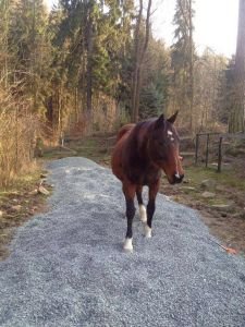 Ke zpevnění cest používáme někde menší štěrk, jinde písek či kamenný prach (prosívka). V takové vrstvě, aby to pro koně bylo pohodlné a příjemné. Funguje to jako skvělá masáž. Na každou novou fůru se koně doslova těší a rádi se do ní chodí válet a odpočívat. Zcela úmyslně budujeme treky s různými druhy povrchů (opět další rys systému Paddock Paradise), jen minimum jich je nezpevněných. Nechceme, aby koně v blátivá období chodili v bahně. Tímto zajišťujeme i částečný „samotrim“, kdy si bosá kopyta zcela samovolnou cestou udržují díky obrusu o kamení různých velikostí přirozený tvar a stávají se tak pevnější a zdravější. Ale neznamená to, jistěže, že bychom pravidelný trim vynechávali. 🙂