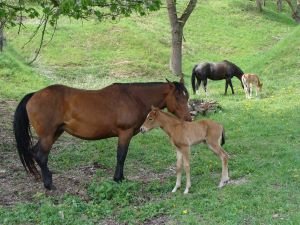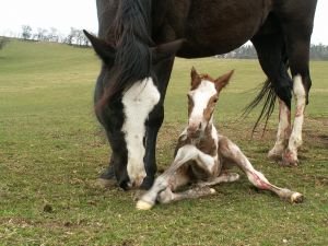 Vezmu odpověď trochu obšírněji: 🙂 Můj úplně první porod zde mi kobyla naservírovala v pravé poledne, o víkendu, tak, aby u toho bylo co nejvíc lidí, aby se všichni pořádně přiučili, jak to má vypadat. 🙂 Když jsem ji navlékla do ohlávky, že se půjdeme kousek projít, kobyla sice poslušně šla, ale ve výběhu kousek od východu zastavila, spustila vodopád – a porod začal! 🙂 Tak jsem ohlávku zase sundala, navolila číslo své veterinářky a s ní na mobilu jsme všichni jen tiše sledovali, jak nastávající matka chodí po pastvině (ostatní koně jsme odvedli do vedlejšího výběhu) a hledá vhodné místo, kde by potomka přivedla na svět. Byla nás spousta diváků, ale kobylce to bylo úplně jedno, prostě pro nás pořádala představení. 🙂 Všechno šlo hladce, za deset minut bylo hříbě na světě. Kobyla počkala, až k ní dojdu, hrdě mi mrně představila a když se postavilo na nohy, pomalu s ním obcházela tu tříhektarovou pastvinu, ukazovala mu, kde je jeho doma… 🙂