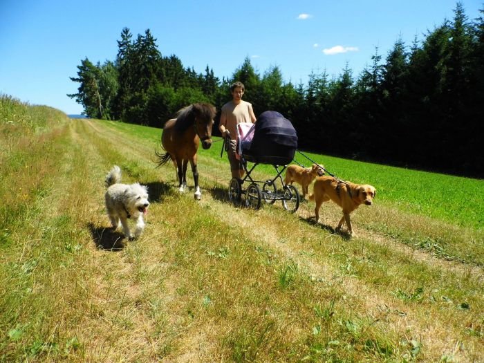 V ježdění se musíme střídat, jelikož nemáme hlídání pro děti, takže jeden hlídá, druhý jezdí. Snažíme se, aby se oba naši koníci dostali dvakrát týdně pod sedlo, ale ne vždy se to daří (moc práce, špatné počasí, chybí parťák…). Ale v létě se mi podařilo vyrazit i na pár celodenních výletů. 🙂