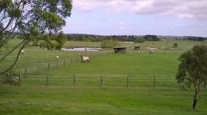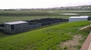 Celá farma je ohrazena ovčím pletivem, pastviny jsou na obvodu kombinace pásky a lanka (tři linie). Pastvina je pak rozdělena páskou, někdy na vysokých plastových kůlech, aby se dala přemístit a posouvat. Dva paddocky máme ohrazené dřevem, pro koně, kterým elektrická páska moc neříká. Máme velice silný zdroj, ohradník „kope“ hodně, ale někteří výtečníci prostě prolezou jako Houdini. Tyto dva pevné paddocky také využíváme, pokud dojedou do tréninku hřebci.