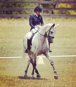 Mezi koňmi, kteří se ke mně dostali na nápravu, byl také Grey Goose. Šedák, s původem jako dělo (Calypso II/Weltmayer/Donnerhall), ale bohužel špatně obsedlý. Kdykoli se mu něco nelíbilo, kozloval. Jelikož již dostal pár lidí do nemocnice, koupili ho moji klienti za jateční cenu. A tak skončil u mě. A jak to s ním je teď? Před měsícem jsme šli první FEI Prix St Georges a snažíme se kvalifikovat na CDI do Sydney. Mimo závodní sezónu učí své majitele jezdit. :-)“