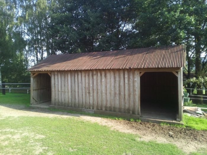 4. Máte na pastvinách přístřešky? Jaké?Ano, naše dubové přístřešky o velikosti 10 x 4 m mají 2 vchody/východy a poskytují dostatek stínu. Vybudovány jsou z bytelných prken. Momentálně máme 3 stejné (na každé z pastvin). Koně je využívají, ale stejně se nejvíce a nejraději zdržují venku v prostoru, a to i za horších klimatických podmínek. Nenastýláme je, pouze někdy, výjimečně (za špatného počasí) uvnitř krmíme senem.