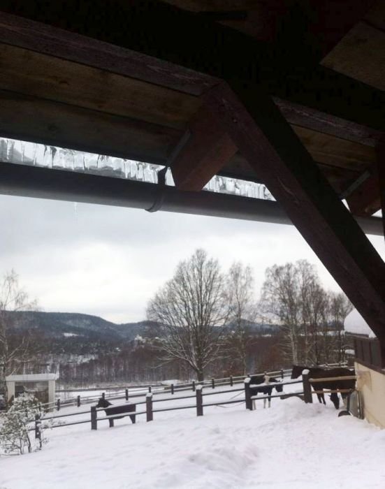 2. Máte k dispozici i boxy? Pokud ano, jak často je využíváte?Ano, boxy ve stáji samozřejmě jsou – venkovní chov koní přece neznamená, že v případě nemoci nebo porodu jsou zvíře, veterinář i ošetřovatel odkázáni jen na rozmary přírody… 🙂 Chceme koně venku, ale nechceme sebe ani majitele zde ustájených koní ochudit o luxus suchého zázemí při manipulaci se zvířaty, vyberou-li si je. Ani nenutíme naše kováře k práci v dešti, netrvají-li na tom 🙂 A zpocenému koni po vyjížďce bez špatného svědomí dopřejeme půlhodinku pod odpockou u plného žlabu… 🙂 4 boxy mají velikost 4 x 3 m, další 4 boxy jsou o rozměrech 3 x 3 m a porodní box je velký 6 x 3 m, s možností přepažení. Ten máme osazen kamerovým systémem.