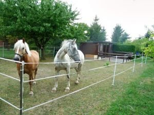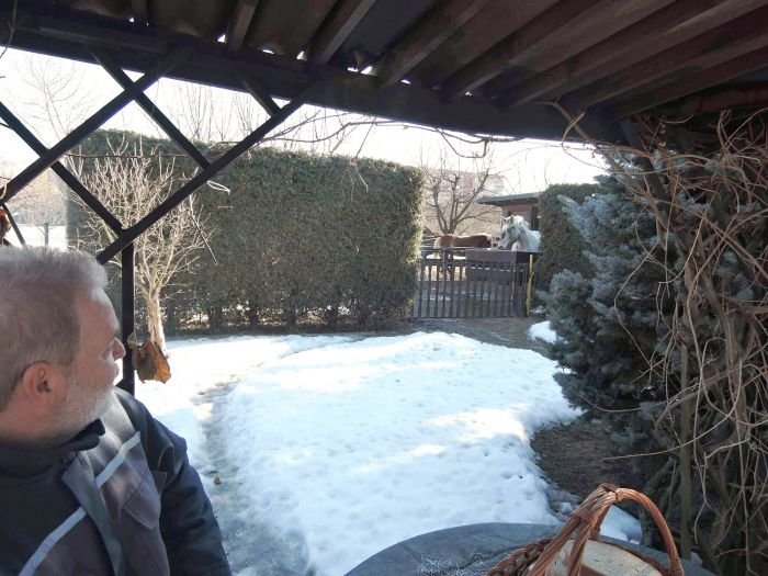 Máme 2 koně – valacha haflinga a polského chladnokrevníka. Ty jsme si tedy dali do místních stájí kousek od domu. Velice rychle si zvykli, na rozdíl od nás, kteří jsme se v noci chodili na vlastní oči přesvědčit, jestli jsou zalezlí v otevřené stáji, jestli jim není zima, jestli nějak nestrádají… – abychom se s nepoužitou dekou pod paží vraceli trochu uklidněni opět domů. Ano, nějaký čas to vyhovovalo, trošku jsme si odpočinuli, já se dala zdravotně kapku více dohromady, jenže jsme začínali pomalu, ale jistě zjišťovat, že nám koně doma, pěkně "na očích a po ruce", hrozně moc chybí. Měli jsme je sice v dobrém ustájení jen 500 m od domu, ale neměli jsme vlastně čas za nimi po práci zajít, a když ano, tak to pro nás velký přínos nemělo. Já jsem ze zdravotních důvodů jezdit stále nemohla, takže jsme při návštěvách jen vyčistili, postarali se o kopyta – a tím to vše končilo. Přijít k ohradě s dvaceti koňmi, vrazit tomu mému do huby mrkev a jít zase domů, to mne příliš nenaplňovalo. A bylo vidět, že i přes volnost a opravdu velikou pastvinu chybí kontakt i koním. Pokaždé se oddělili od stáda a běželi za námi na zavolání – a já pak šla domů s brekem, že se mi stýská.
