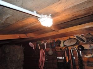 10. Kolik času denně vám péče o koně a prostory zabere? Stíháte jezdit? A kde skladujete jezdeckou výstroj?Péče o koně mi při důkladném čištění celé ohrady a boxů zabere hodinu. Pakliže mám v práci ranní službu a spěchám, pořídím nakrmit i vykydat za 10 minut a vše dočistím důkladně večer. Jinak, jak jsem již nahoře zmínila, koníkům věnujeme veškerý volný čas, protože ustájení doma nám to prostě bez problémů dovoluje. Můžeme za nimi dojít, kdykoliv jdeme okolo po zahradě, třeba jen podrbat, zkontrolovat. A je vidět, že jim to tak také plně vyhovuje, vyžadují kontakt. Chovají se úplně jinak, než když byli na pastvině "bezprizorní". Nehledě na to, že člověk ví o každém jejich zakašlání, soplíku, škrábanci, vadě na kopýtku a může vše řešit okamžitě, což dříve také nebylo tak úplně pravda. Věděli jsme, že koník kašle, ale jak často, při jaké příležitosti – ptejte se ustajovatele… Samozřejmě není jeho povinnost lítat ke koni několikrát za noc kontrolovat, jestli kašle víc nebo míň. Takže on vám to pouze oznámí. Zbytek je na vás.