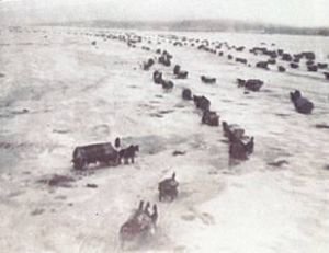V jednom místě začal led praskat a musely se mezi vozy zvýšit rozestupy až na 50 metrů. Někteří koně byli netrpěliví a vystrašení a v panice vyráželi vpřed, led se pod nimi probořil, utopili se lidé i koně (dodnes se na Viselské kose obchoduje s nálezy ze dna zálivu). Obleva situaci ještě zhoršila, ale po pár dnech zase přišel mráz a vytvořil souvislou, velmi hladkou, ledovou plochu. Někteří své koně zuli nebo jim dali ozuby, aby jim to neklouzalo, ti s podkovami bez ozubů padali, vstávali a znovu padali. Rusové dobře viditelný černý pruh běženců na bílé zemi ostřelovali z letadel a bomby nadělaly v ledu krátery, ze kterých vystřelovaly ohromné gejzíry. Lidé a koně potřebovali velké štěstí, aby dosáhli pevné půdy pod nohama na písku Viselské kosy.