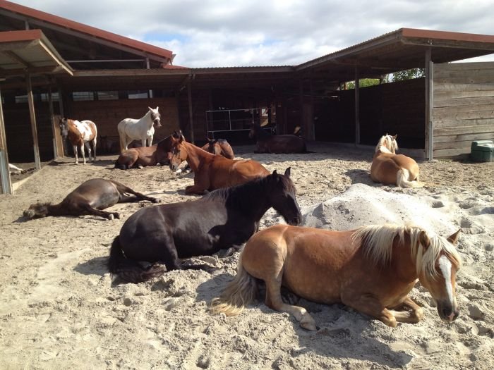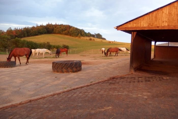 Koní máme v ustájení 10–12 podle situace. V našem místě pobytu máme k dispozici 3 ha pastvin, což je již pro tyto počty zvířat žalostně málo. Proto se od příštího měsíce stěhujeme na novou lokalitu o cca 10 km vedle, kde budeme mít k dispozici až 3x více travnaté plochy. Stěhujeme se kvůli větším rozlohám pastvin i za cenu, že tím přijdeme o krásné zázemí s halou a boxy, které ale stejně nevyužíváme…
