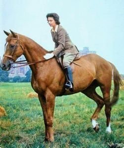 Královna samozřejmě od dětského věku jezdila i na koni, začínala ve čtyřech letech na malých ponících, postupně přešla na velké koně. Jezdila je rekreačně i při různých oficiálních ceremoniích, např. svoji černou klisnu Burmese od Královské jízdní policie jezdila plných osmnáct let při takových příležitostech. Ještě vloni v jejích 94 letech fotky zachycovaly, jak jezdí na fellské klisně. Královna byla velice dobrý jezdec, ale my ji známe především v roli majitelky a chovatelky.