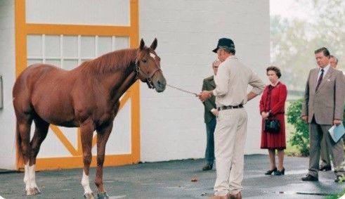 Královna je nefalšovaný fanoušek dostihových koní do morku kostí, takže při jakékoliv příležitosti velice ráda navštěvovala chovy koní a nejrůznější akce spojené s nimi a samozřejmě dostihové dráhy po celém světě. Potkala tak největší plnokrevné velikány té doby, např. při jedné takové tour v USA, kde byla na státní návštěvě, si zajela do Kentucky a potkala koně jako Secretariat, Nijinsky II, Round Table, Raise A Native atd.