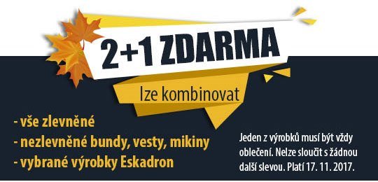Kombinujte veškeré zlevněné zboží (pro jezdce i pro koně) + vybrané výrobky Eskadron (označené žlutou cedulkou 2+1) + NEzlevněné bundy, vesty nebo mikiny pro jezdce. Vždy však musíte mít mezi vybranými všemi třemi věcmi 1 ks oblečení.