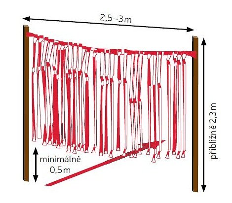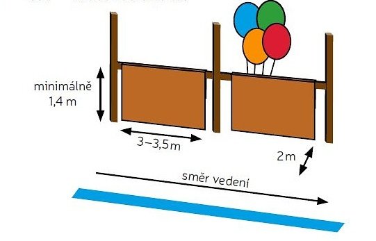 Za dvojitou neprůhlednou překážkou je skrytý člověk, který se vztyčí a dvakrát až třikrát energicky zamává horkovzdušnými balonky. Kůň nesmí opustit vyznačenou uličku.