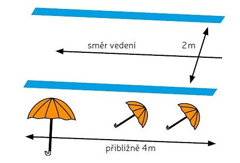Kůň se blíží k pomocníkovi, který stojí u dvou otevřených deštníků, a v blízkosti koně ve vzduchu dvakrát otevře a zavře deštník. Kůň opět nesmí opustit vyznačenou uličku.