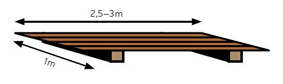 Čtyři tyče jsou položeny do čtverce a kůň jej prochází po úhlopříčce. Měl by je překračovat pozorně, bez okopávání. Případně může být překážka vylepšena tak, že ve středu čtverce je šustící listí, zmuchlaný novinový papír nebo praskající větvičky.