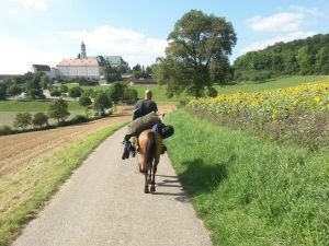 Nakonec jsme zastavili na tři týdny za Freiburgem na dohled od francouzských hranic u Eddieho. Eddie byl jediný člověk, kterého jsme na cestě potkali, který také jel na koni do Santiaga. Dnes je mu už 65 a stále má koně. Někdy s ním ale bylo těžké vycházet, takže jsme byli rádi, když se Stázka po antibiotikách uzdravila a mohli jsme pokračovat v cestě.