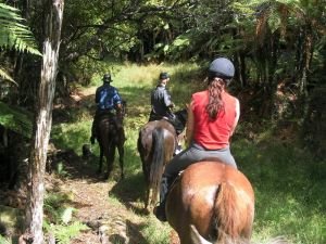 První koňský výlet byl hned 5. den po našem odletu z Prahy, tedy třetí den našeho pobytu na Novém Zélandu. Tento track se jako jediný uskutečnil na severním ostrově. Další již budou až na ostrově jižním. Ráno vyrážíme z kempu k našemu prvnímu dobrodružství v sedlech. Podle objednávky máme jet k západnímu pobřeží severního ostrova, na Kauri Coast. Chvíli bloudíme po cestách-necestách, mezi pastvinami a lesy. Po pár kilometrech vidíme koně uvázané u zábradlí, tak u nich zastavíme. Stáj na nás působí rozpačitě. První dojem není opravdu nic moc. Dům stlučený z překližky, na dvoře pár aut, o jejichž pojízdnosti by se dalo polemizovat – nyní již chápu, proč jsem o dané stáji nemohl na internetu najít žádné kloudné informace a nemají internetové stránky… Koně na pohled vypadají v dobré kondici. Po krátkém seznámení s majiteli a ujasnění našich jezdeckých schopností nám jsou rozdány cajky, které zřejmě od svého opuštění sedlářské dílny za 2. světové války neviděly cokoli mastnějšího, než lidské ruce.