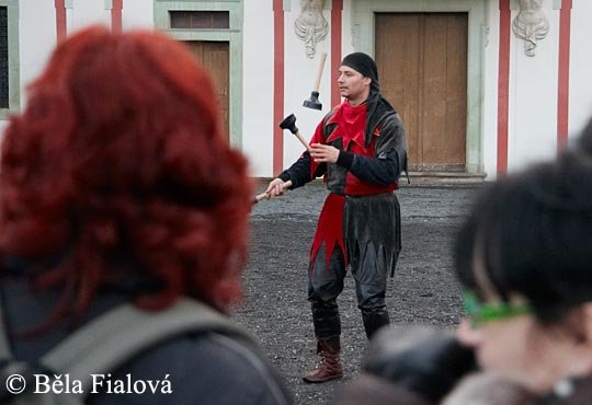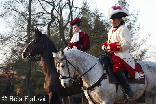 Své jezdecké umění i ukázky sokolnictví tu v areálu zámku a zámecké zahrady předvedla Česká barokní společnost. Mohli jste se například naučit zacházet s mušketou, a to přímo pod vedením "pravého" mušketýra. Nesmělo chybět ani zastoupení Sdružení Dámy v sedle. Dámy jezdí na zámek v Mnichově Hradišti dělat stafáž už třetím rokem. Letos však (díky velké koncentraci diváků) nahradil pas-de-deux v zámecké zahradě pouze "živý obraz" šlechtičen na vyjížďce.